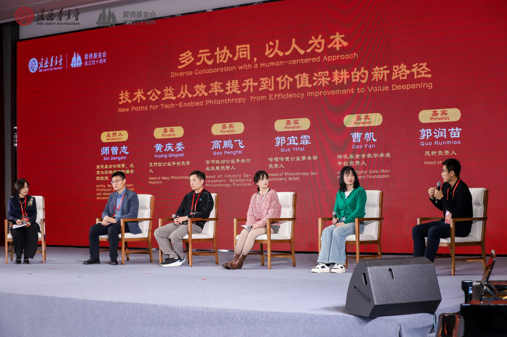 现场,来自腾讯、支付宝、字节跳动、哔哩哔哩、灵析等互联网公益平台的五位嘉宾围绕“多元协同 以人为本,技术公益从效率提升到价值深耕的新路径”的主题进行探讨。大家一致认同,未来技术公益的关键在于“以人为本”,通过多元主体的协同创新,将技术能力转化为更深层、更温暖的社会问题解决方案,最终推动公益生态的可持续发展。